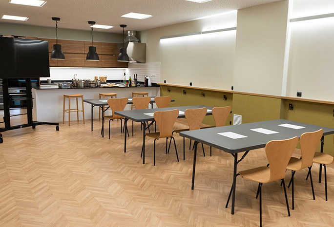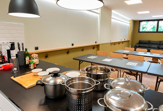 Es posible alquilar nuestro local para realizar cursos o talleres de cocina, pintura, costura, idiomas, … Nuestra capacidad es de hasta 46 personas.